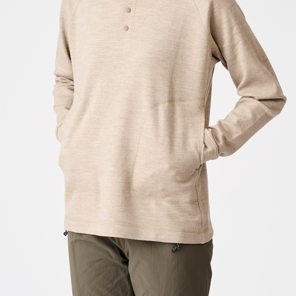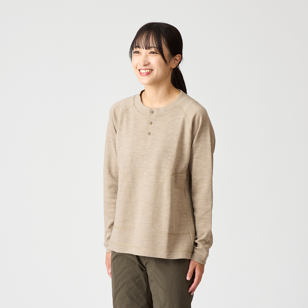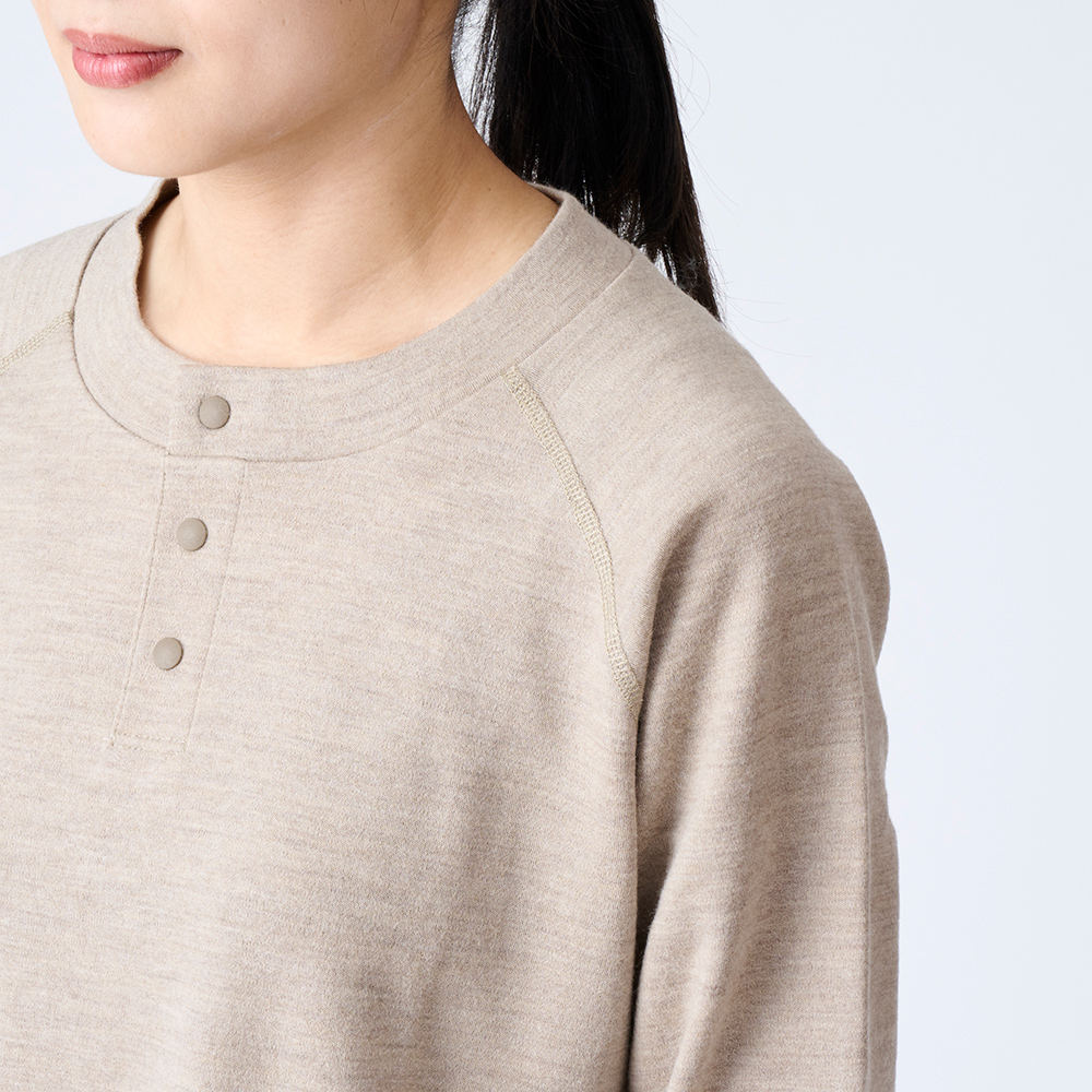 100%ウールだけ。温度と湿度を調節してくれる厚手カットソー。