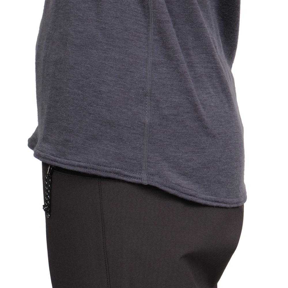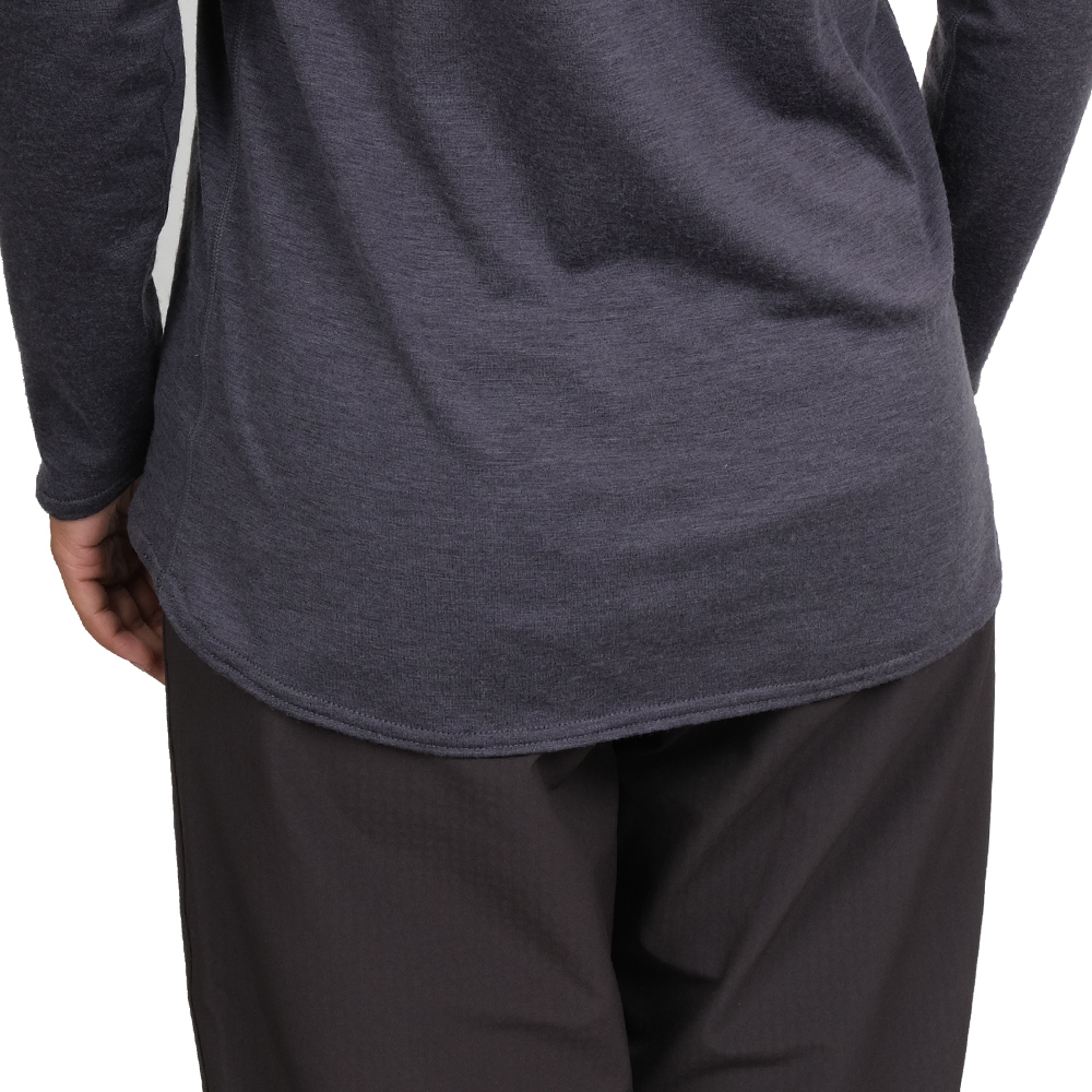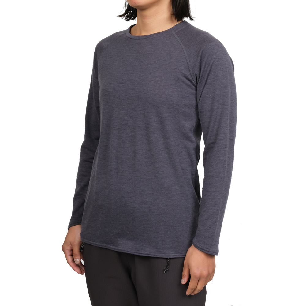 ふんわり優しい肌触りが特長の革新的なウール素材NUYARNを採用したロングスリーブティーシャツです。素材の良さを引き出すために敢えてシンプルなデザインを採用し、レイヤード時の肩まわりのごろつきをなくすためにラグランスリーブで仕上げています。運動量の多いハイキングや雪山のラッセルにもオーバーヒートしないちょうどいい保温性と通気性、そして吸汗調湿性があります。