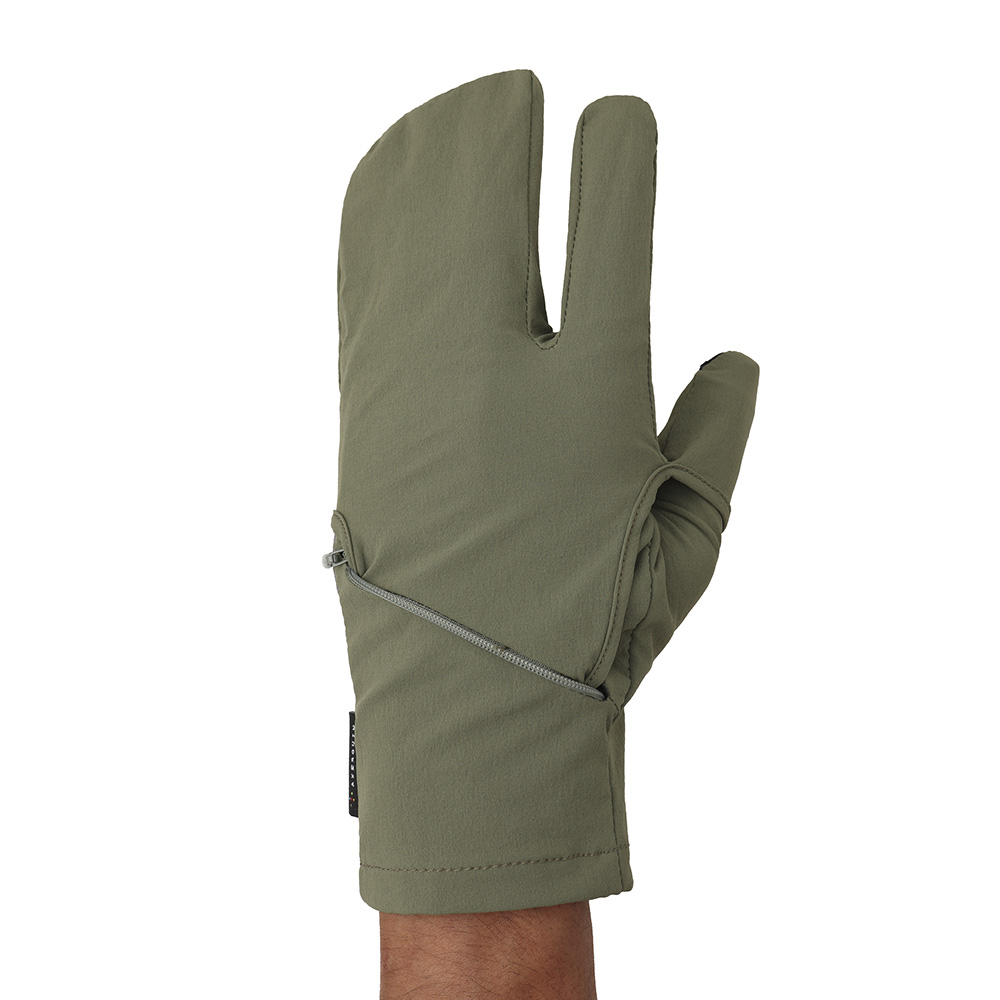 ・手の甲に収納可能なソフトシェルのトリガーミトン