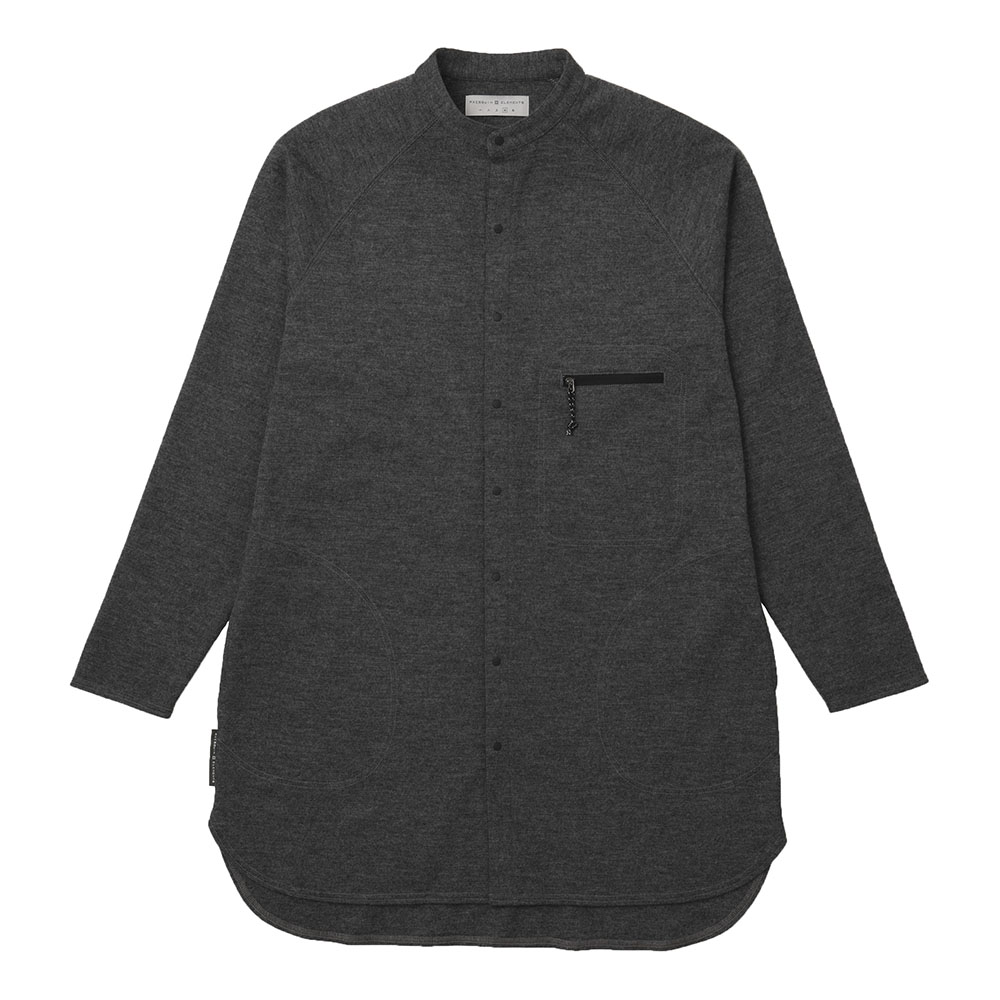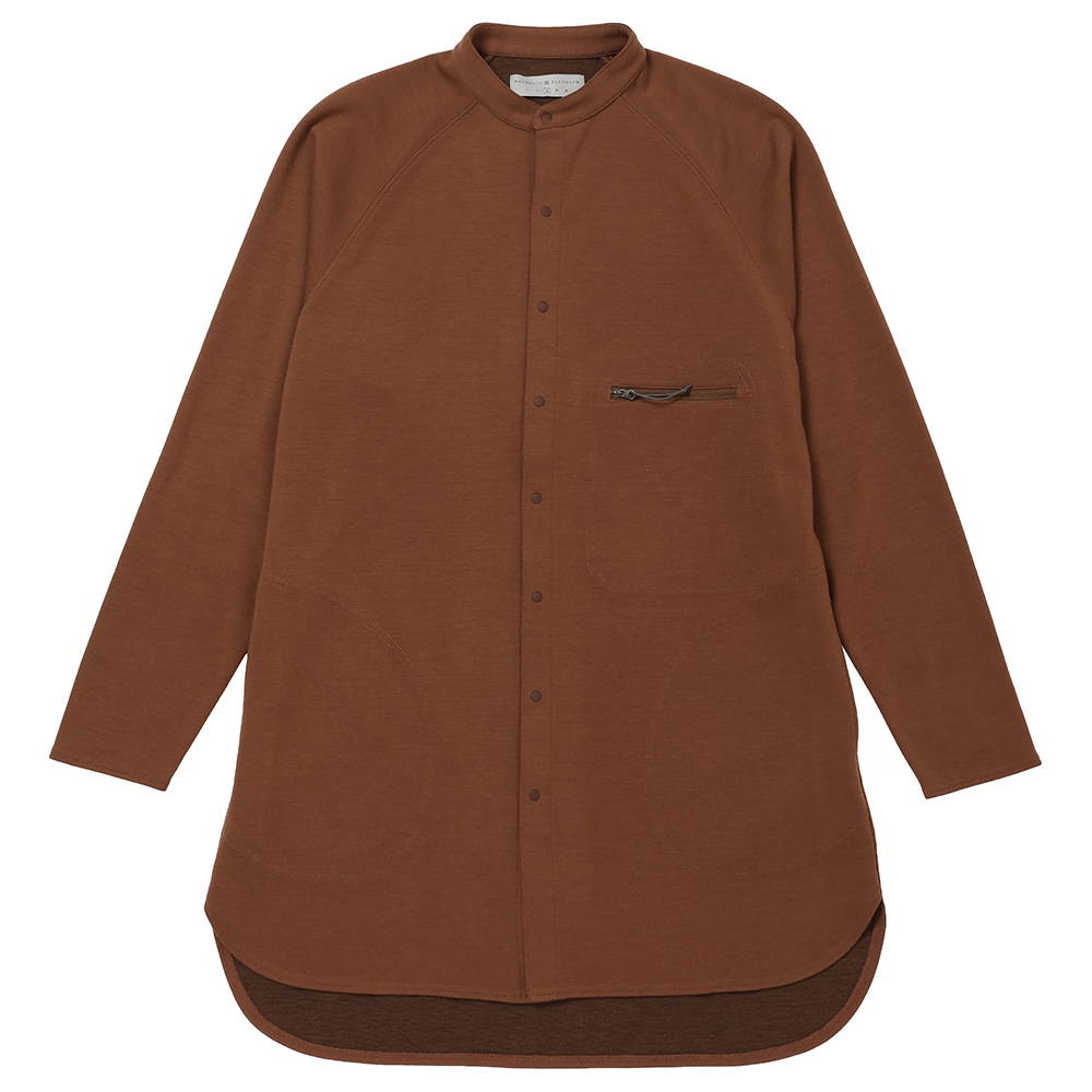 冷え込んだ日影の渓道や、あたたかな陽だまりの尾根道といった秋冬のクラシックルートをのんびり満喫する為の、膝上までのロング丈が特長のリラックスシャツです。