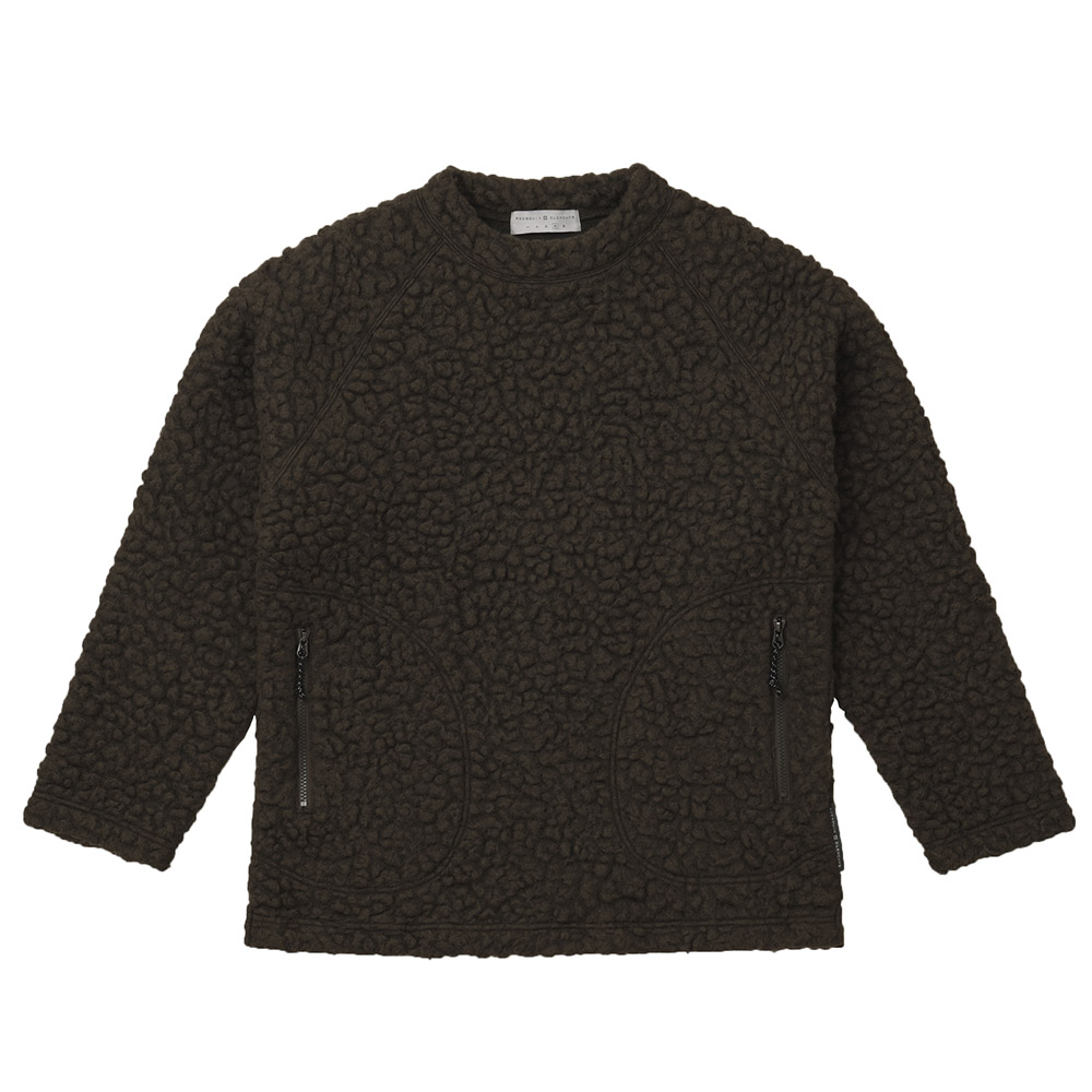 紅葉を愛でながら人気のない古道をのんびり歩くのに最適な、ざっくりとしたボリューム感のあるウールボアのセーターです。