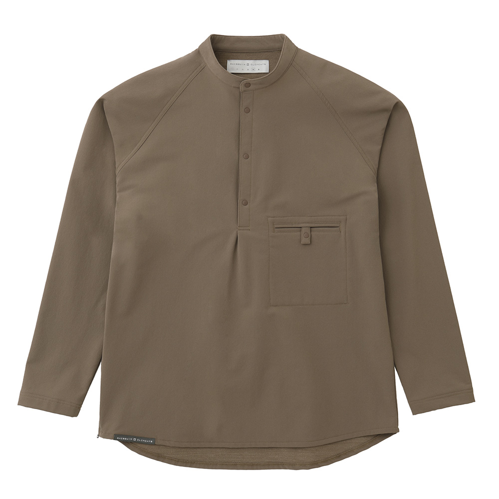 おとなしいプルオーバーのデザインですが、実はメリノウール混のschoellernaturetecファブリックを使用したハイエンドなソフトシェルなのです。