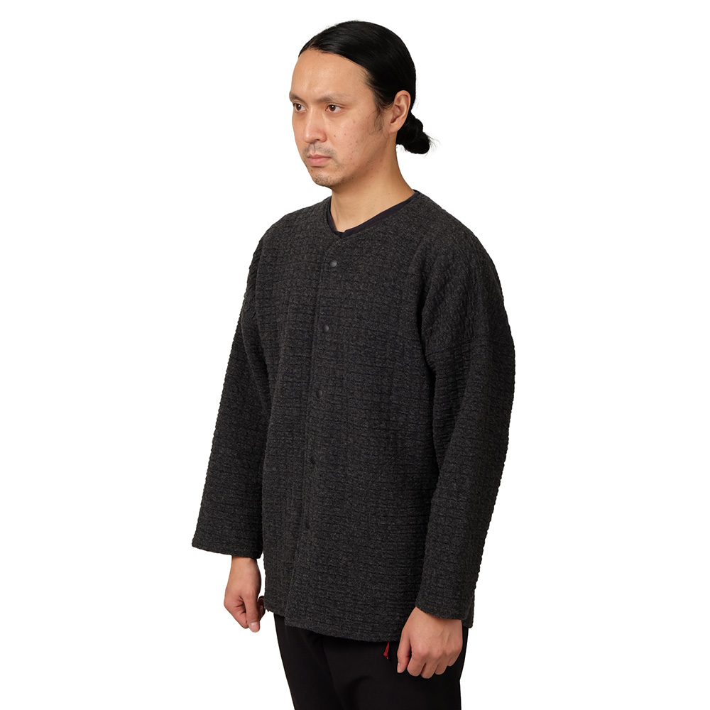 立ちはだかる壁の直登にもオーバーヒートせず、日影の尾根歩きにも寒さを感じない、そんなわがままをかなえてくれる野良着風デザインのシャツです。特に気温が低い時期のシノギングでこのシャツの機能を実感することができます。