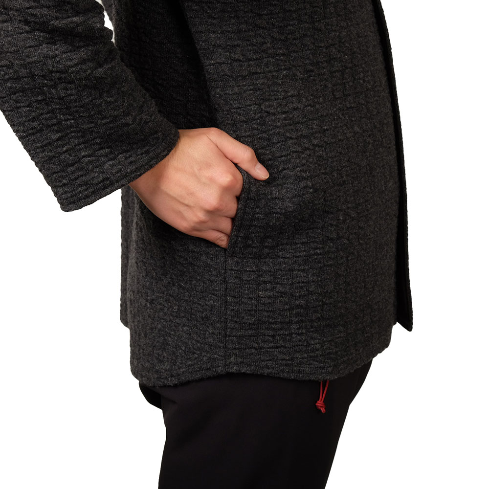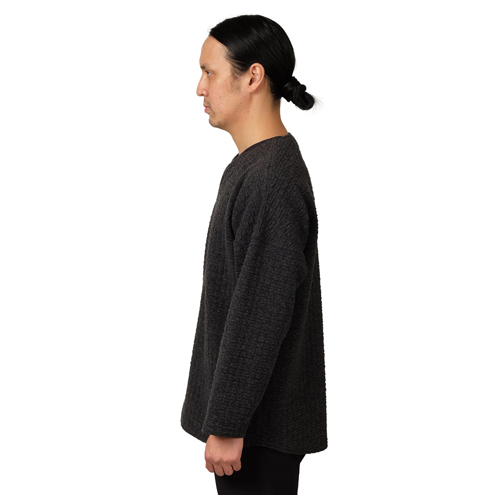 やや目の詰まったウール素材には厚手のセーターのような安心感があり、ウール混素材ならではの暖かさを感じることができます。シノギングでたっぷり掻いた汗が、表面に細かな水滴となっているのがわかるほど汗を放出してくれます。また、ウールには天然の抗菌防臭効果があるので、マタギの狩りのように数日に渡るシノギングにも安心して使えます。