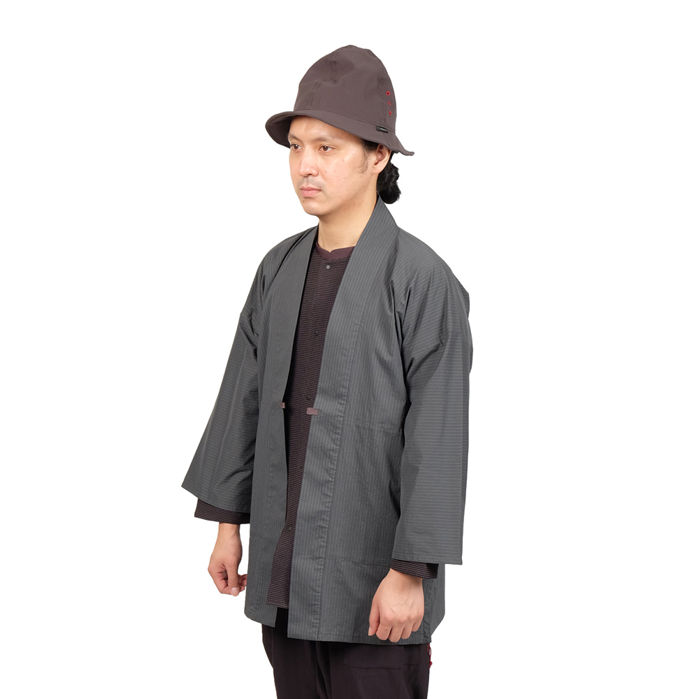 凌では独自の美学で日本の低山を歩くため道具を創造しています。欧米から伝わったお洋服ではなく、かつて野良で仕事をするための着物だった野良着の意匠を取り入れたノラギは、シノギングに必要な機能を備えた最新の素材を採用し、シノギングに足るように細部のデザインをアレンジしています。