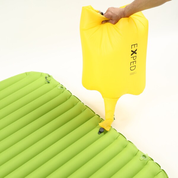 マットを瞬時に膨らませる事が可能なポンプバッグ。呼気を使用しないので、内部が湿気る事がありません。