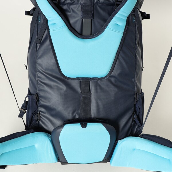 背面は、体型に合わせて長さが変えられるので、自分だけのベストなフィット感を作り出すことができます。また、最小限の接触点と軽量なアルミニウムステーによるキャリーシステムは、荷重を分散させるとともに、背面の熱を逃し、汗を素早く乾燥させます。