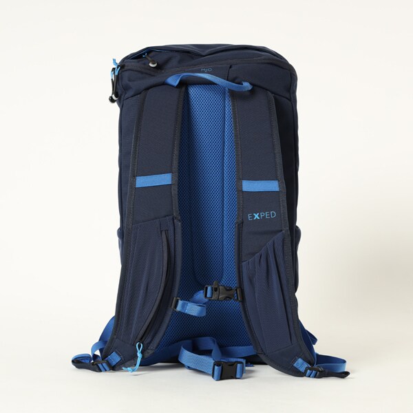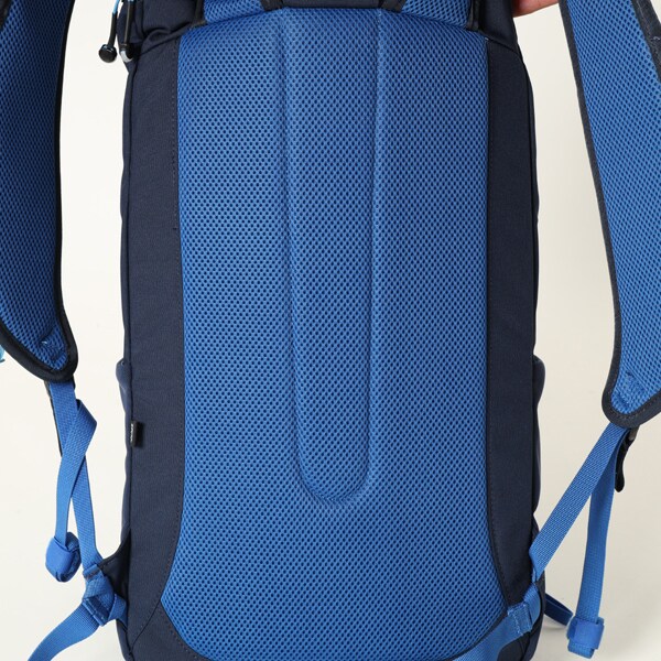 メイン生地はリサイクルポリエステルで、環境に配慮したPFCフリーの撥水加工をしています。生産者の労働環境や環境汚染の厳しい基準を定めたbluesign? 認証を受けています。背面は軽くパッドが入ったメッシュ仕様で汗がこもらず、ウェストベルトは取り外し可能で、服装のスタイルに併せて使い分けが可能です。