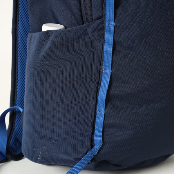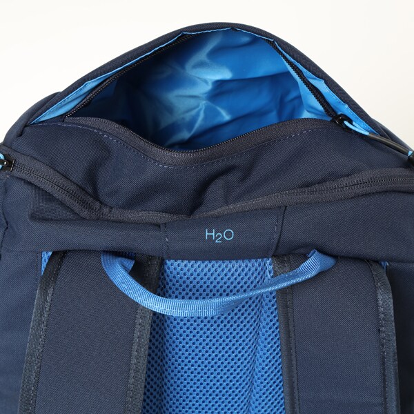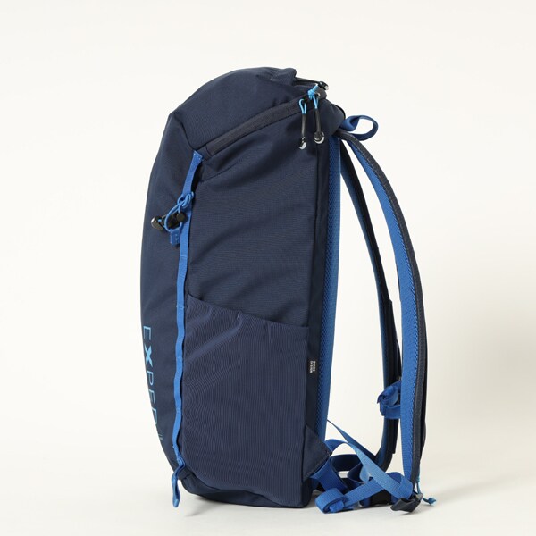 非対称の長いジッパー開口部により、メインコンパートメントに素早くアクセスできます。外側の2つの伸縮性ポケットには、水筒や折畳み傘などのアイテムを収納できるスペースがあります。さらに、ショルダーハーネスの2つのストレッチポケットには、すぐに取り出したい小物を収納できます。