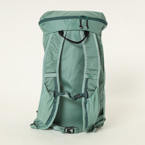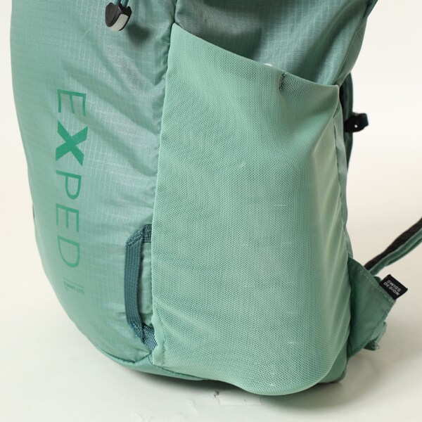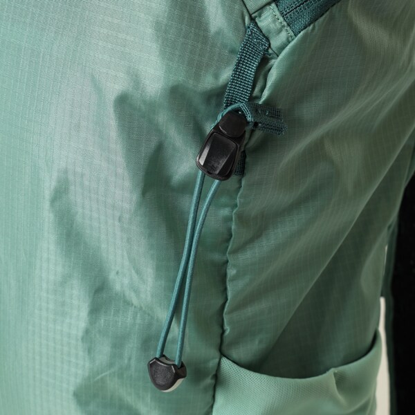 伸縮性のある外側のポケットには、水筒や折畳傘などのアイテムを収納できるスペースがあります。ショルダーストラップの2つのストレッチポケットには、すぐに取り出したい小物を収納できます。チェストストラップとウェストベルトは両方とも取り外し可能です。