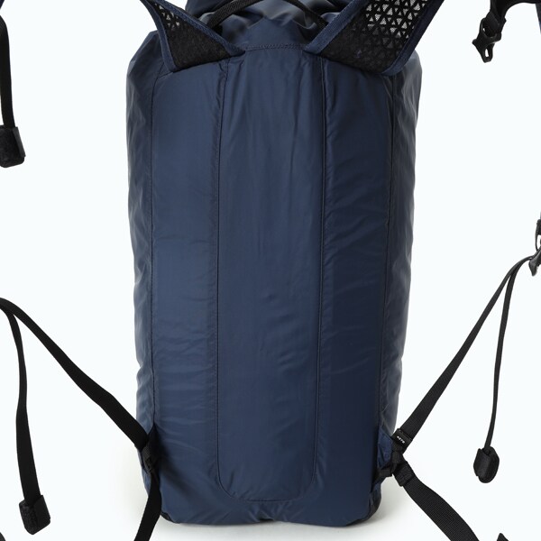 幅広のメッシュショルダーストラップは軽量で通気性がよく、濡れてもすぐに乾きます。