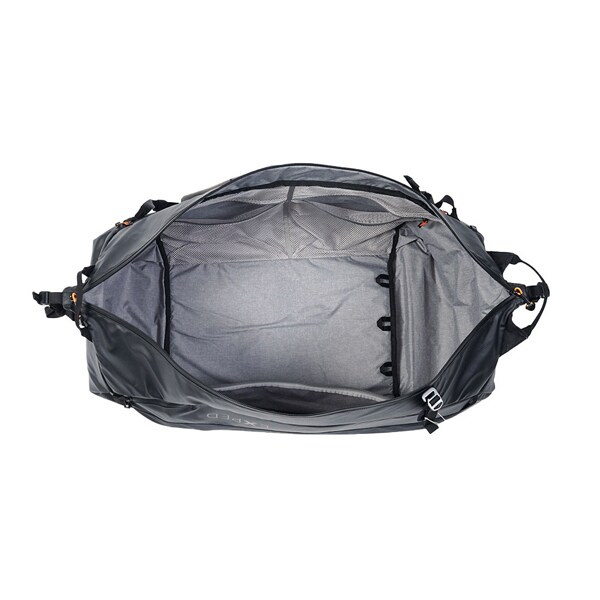 ● 2つの大きなサイドポケット:片方はキークリップ付きでメインコンパートメントに直接アクセス可能なメッシュ仕切りのポケット。もう片方は汗をかいたスポーツウェアを保管するための撥水ライナー付きポケット